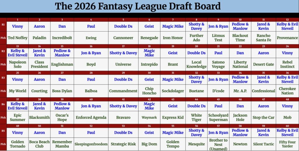 The Racing Dudes host the 13th annual Triple Crown Fantasy League Draft, selecting top contenders on the Road to the 2026 Kentucky Derby (G1). One of the biggest nights of the racing calendar kicks off the season with strategy, debate, and early Derby trail insight.