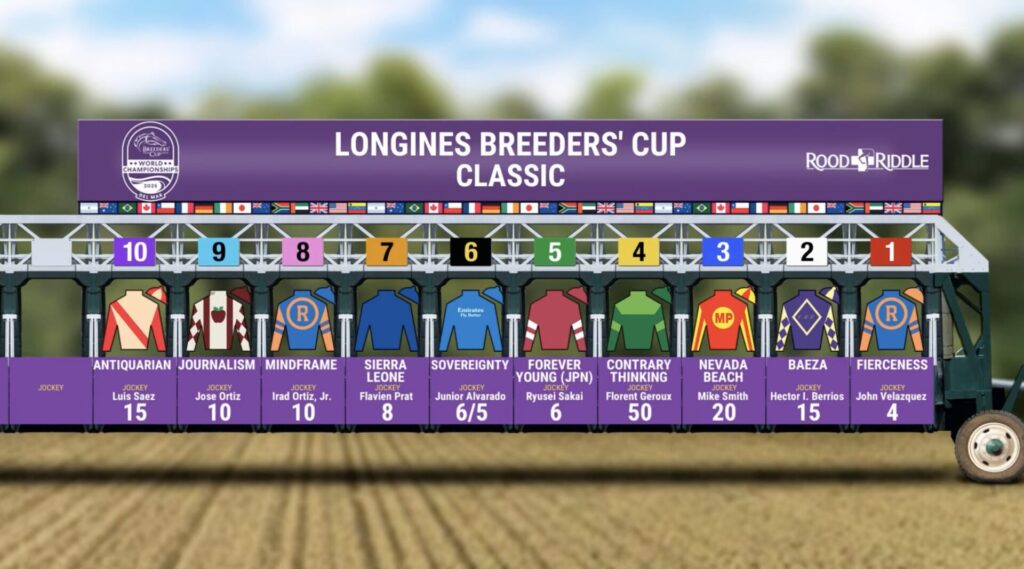 DEL MAR, CA – The stage is set for an epic renewal of the $7 million Longines Breeders’ Cup Classic (G1) — the crown jewel of the 42nd Breeders’ Cup World Championships at Del Mar. A field of ten world-class runners will line up, led by 6-5 morning-line favorite Sovereignty, who looks to cap one of the greatest 3-year-old campaigns in recent memory.