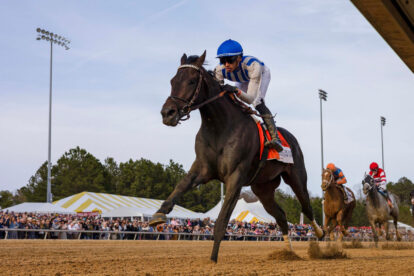 “It was very impressive,” Mott said. “He sat right in the pocket behind a hot pace and was surrounded by horses most of the way. He took Jaime right up into a hole on the rail turning for home and then just blasted off and was pulling away at the end. In his morning workouts and races, he’s always galloped out really well. He’s bred to get distance and he’s shown us he can finish races going long, so we’re optimistic and hopeful we can make it to the first Saturday in May. I’m happy for the horse and our staff, and especially happy for the Pin Oak team and the Bernhard family. We’re missing a very important member today in Mr. Jim Bernhard, but I know he’s looking down on us.”